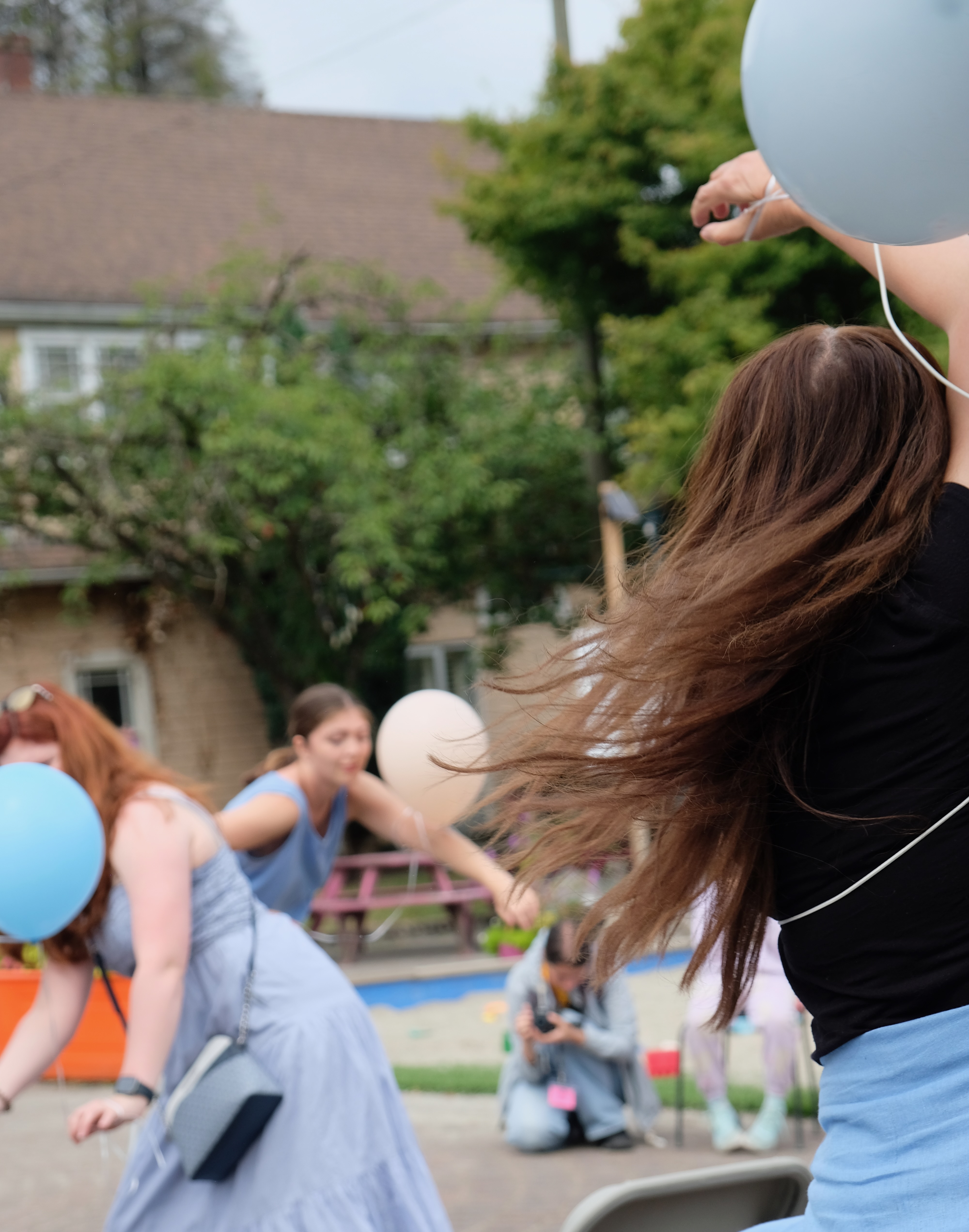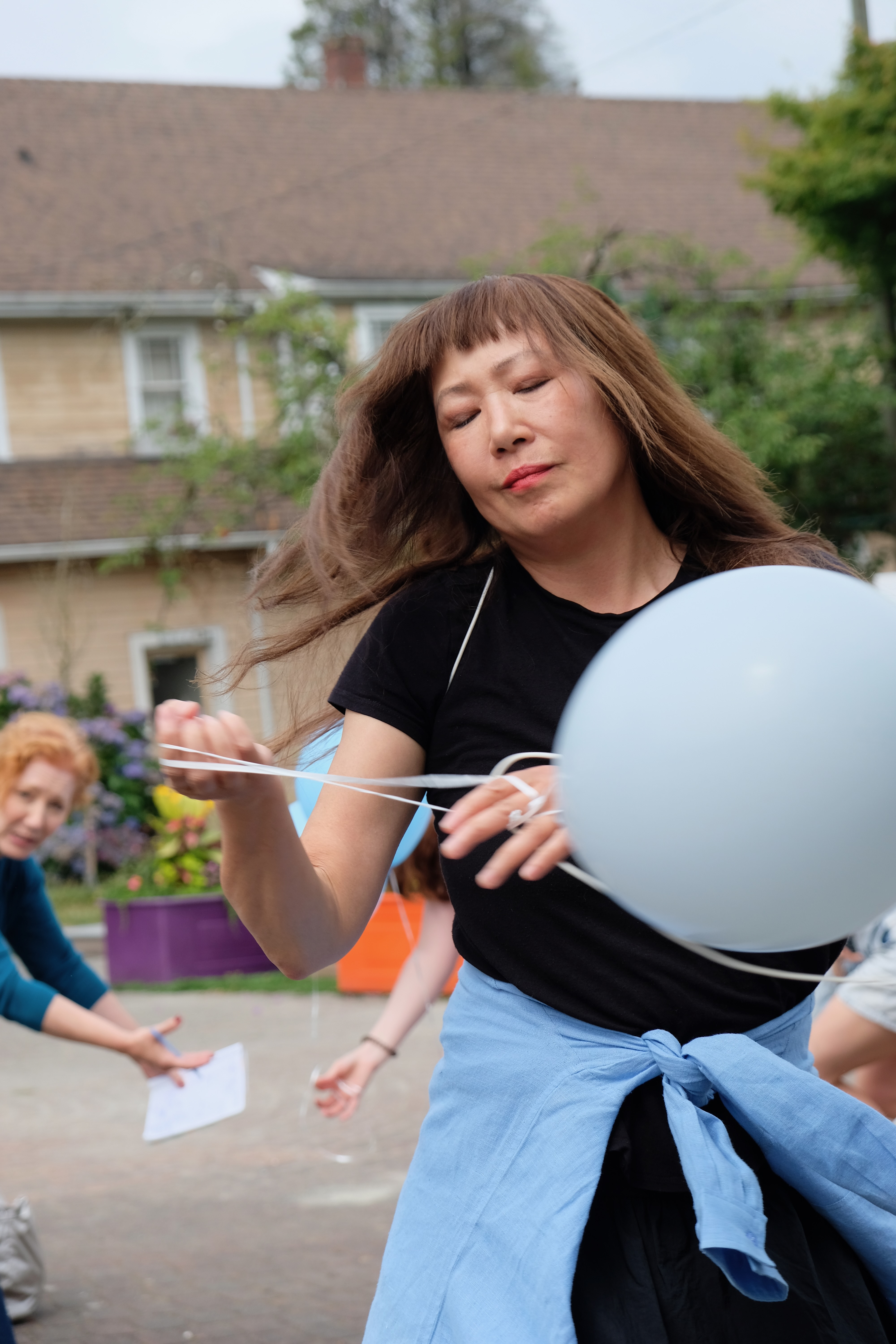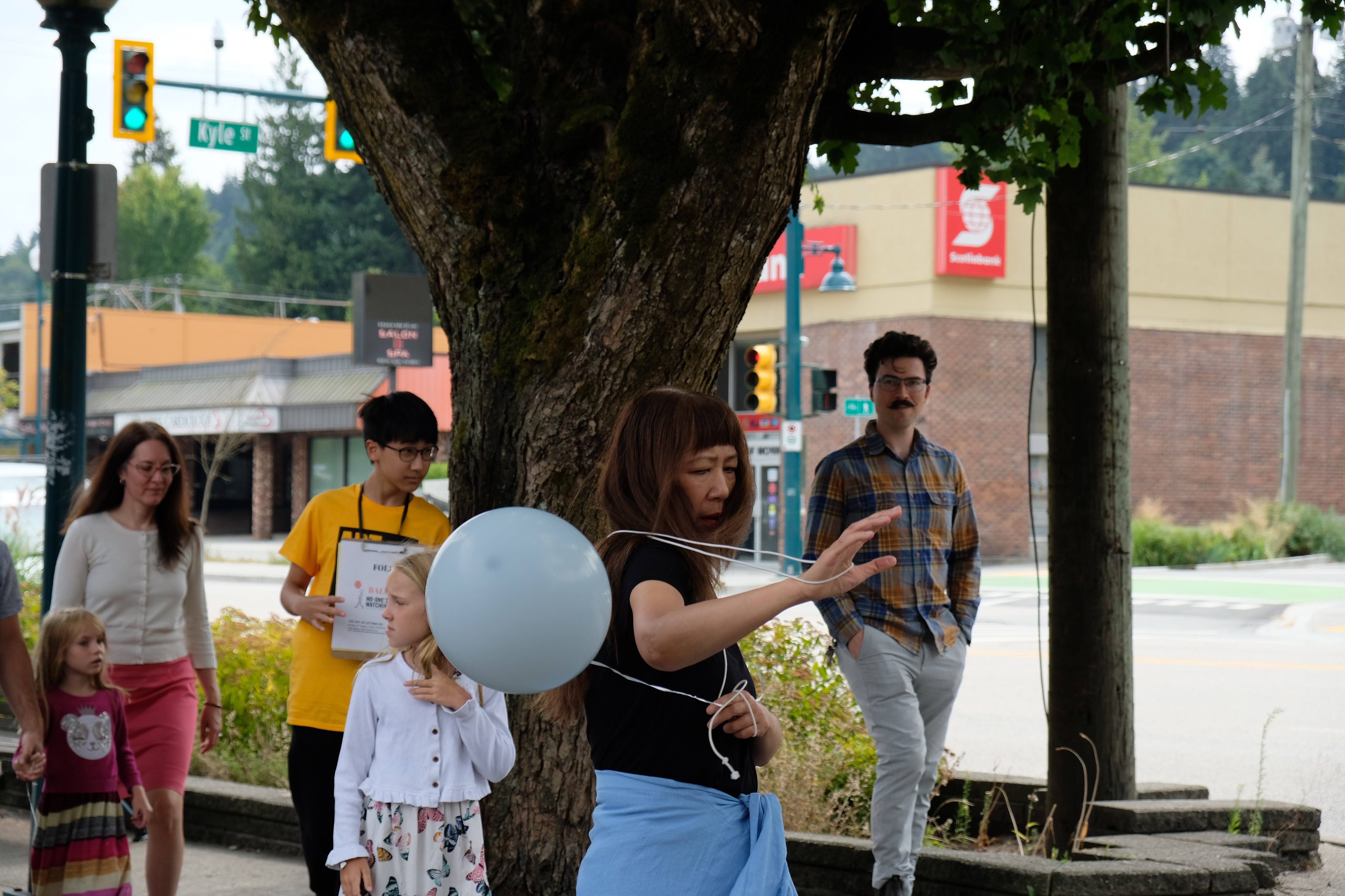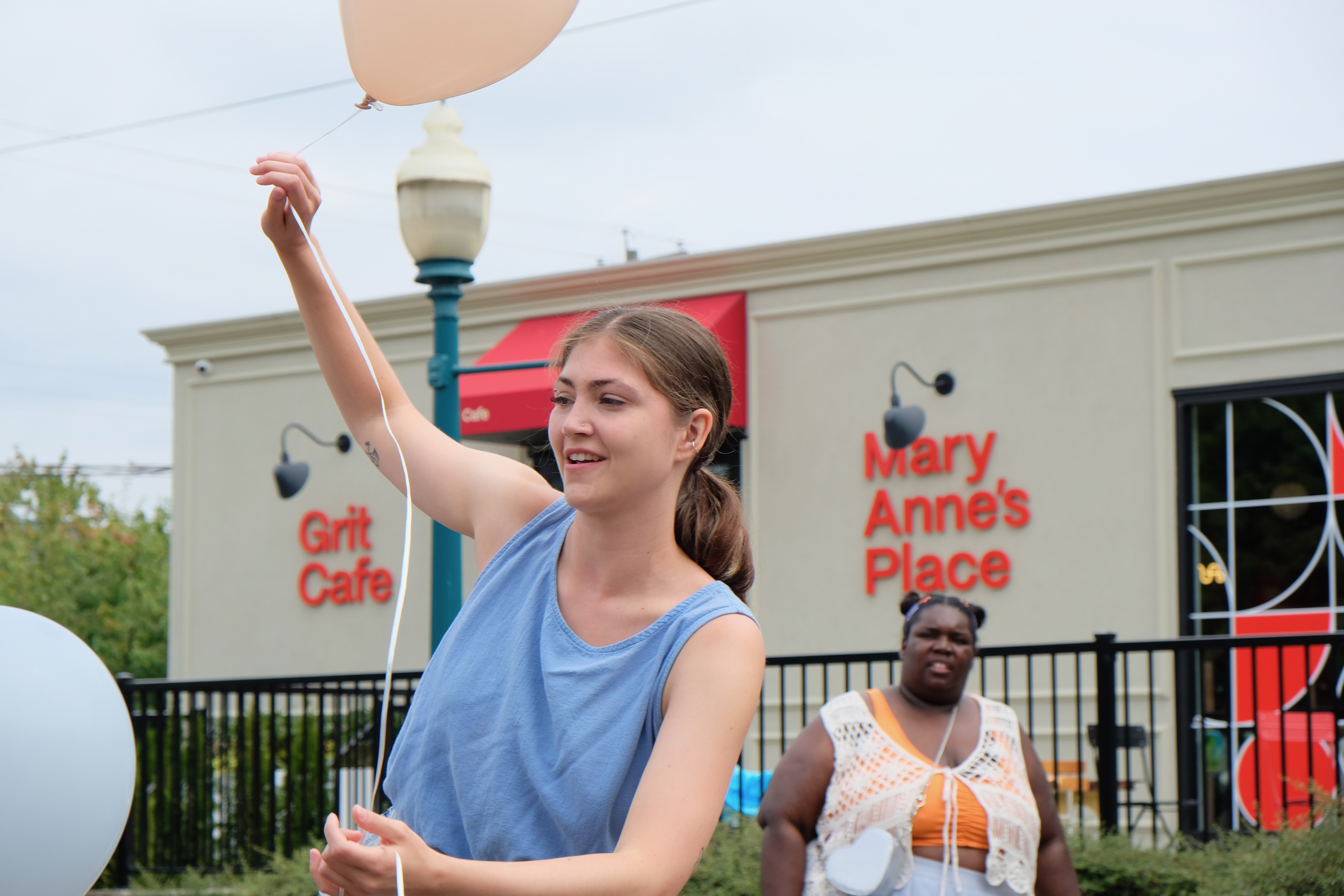 Audience members were invited to participate in a community art installation by writing down what they want to let go of and tieing it to a balloon — a collective act of letting go.